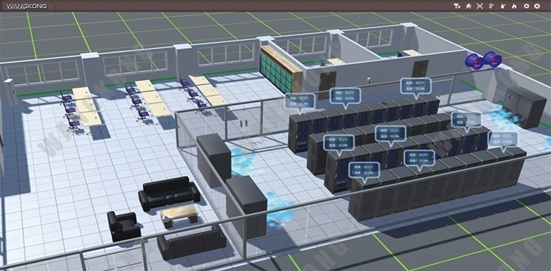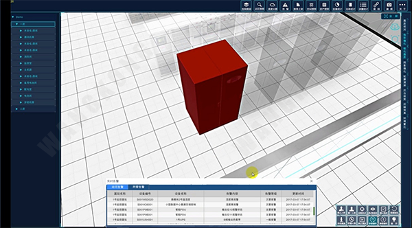 GNC-3D三维可视化监控管理系统软件为广州网控公司自主开发。GNC-3D 三维可视化监控管理软件以虚拟仿真的形式完整呈现监控中心结构、设备摆放情况和实时监控信息。通过鼠标的点击或触摸屏的手势操作,非常直观查看监控中心整体情况、设备的配置和状态及实时告警情况,为监控运维带来全仿真可视化环境,提高运维效率。3D可视化仿真软件能以鸟瞰、漫游、自动巡游等多种方式展示数据中心的基础设备情况,有力提升数据中心整体管理水平。