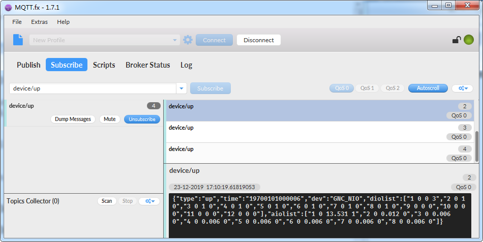 此外,用户也可以通过MQTT.fx客 户端验证连接情况。