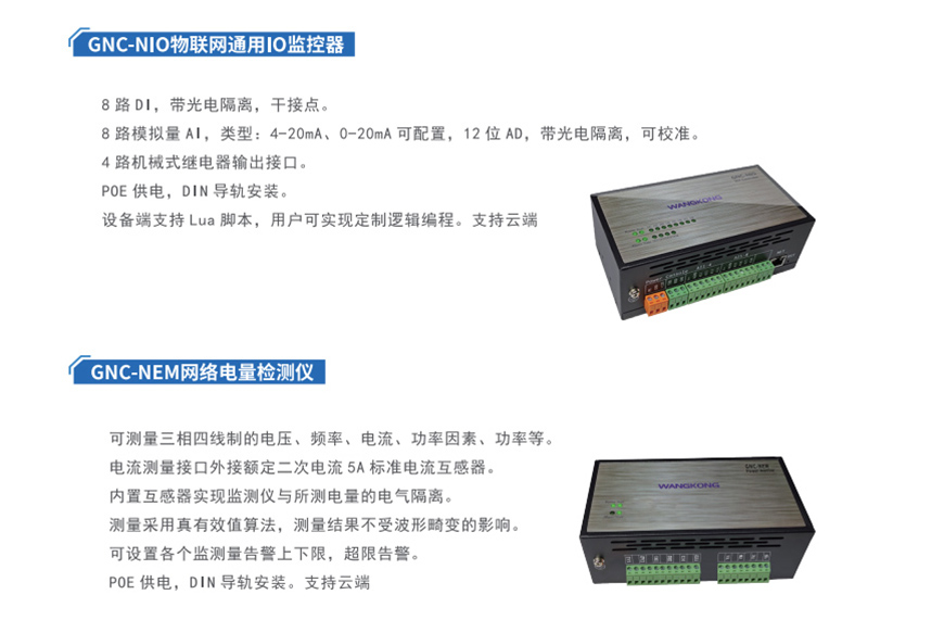 目前缺省的功能主要针对低速DI/DO/AI进行数据采集控制,但广州网控十几年自研技术储备,可以根据用户的需求开发各种接口,比如各种AO,计数,录波等等功能。